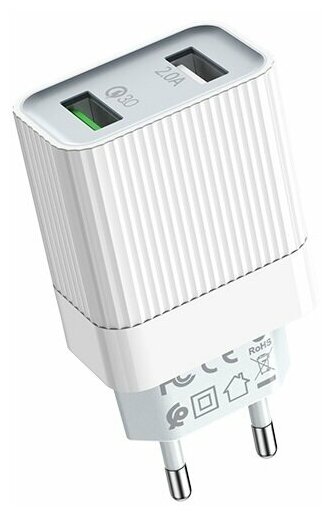 AC adapter 2 USB Borofone, BA39A, Speedway, 2400mA, plastic, QC3.0, Apple cable 8 pin, color: white