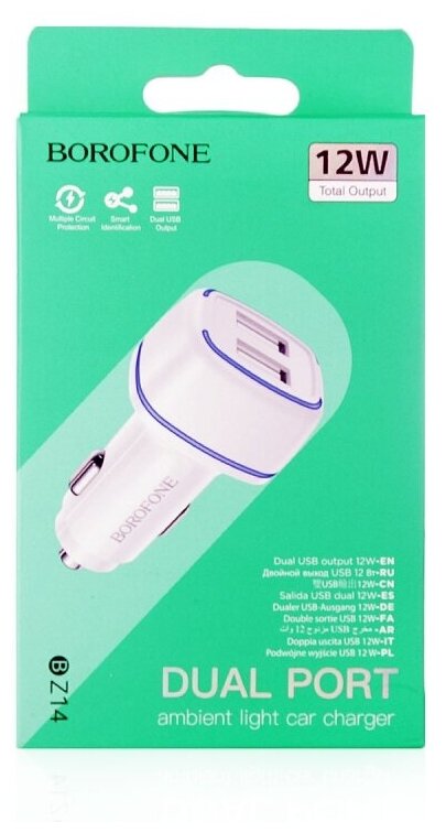 Cable connector: USB Type-A, number of connectors: 2, maximum output current: 2.40A, maximum output power: 12W, features: overheating protection, overvoltage protection