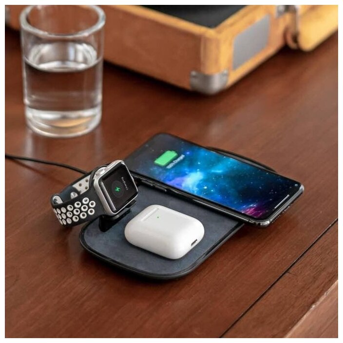 Mophie Wireless Charger for iPhone, Apple Watch and AirPods Pro Qi 7.5W; fabric cover