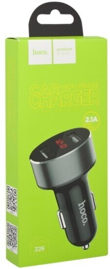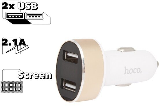 Car charger HOCO Z26 High Praise Dual Port Car Charger With Digital Display 2*USB 2.1A white