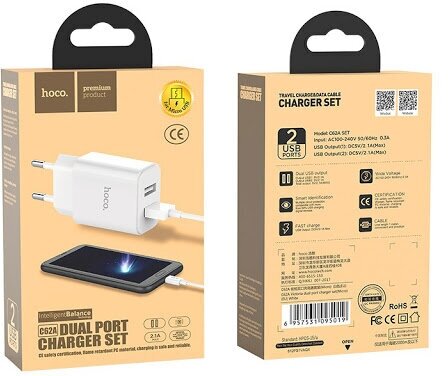 Cable connector: USB Type-C, number of connectors: 2, maximum output current: 2.10 A, cable included, features: overheating protection, cable included