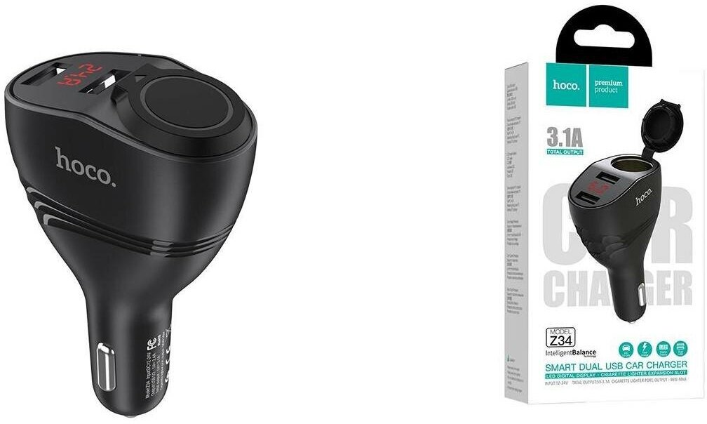 Car charger Hoco Z34 Thunder power cigarette lighter car charger Black