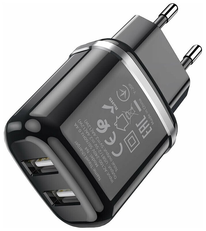 Hoco N4 Aspiring dual port charger set for Lightning Black