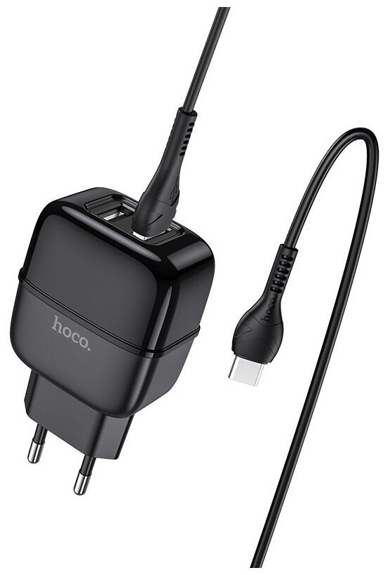 AC adapter 2 USB HOCO, C77A, Highway, 2400mAh, plastic, black