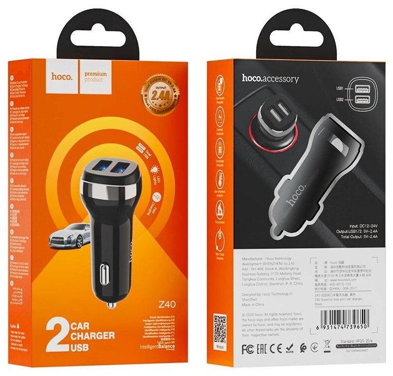 Car charger Hoco Z40 2xUSB 2.4A, black