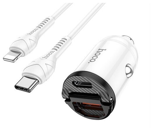 Car charger HOCO NZ2 USB+Type-C PD30W+QC3.0 + Type-C/Lightning cable white
