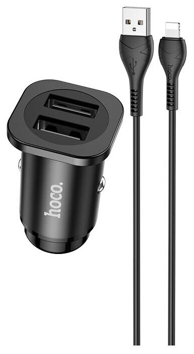 Car charger HOCO NZ4 2.4A/12W + Lightning cable, black