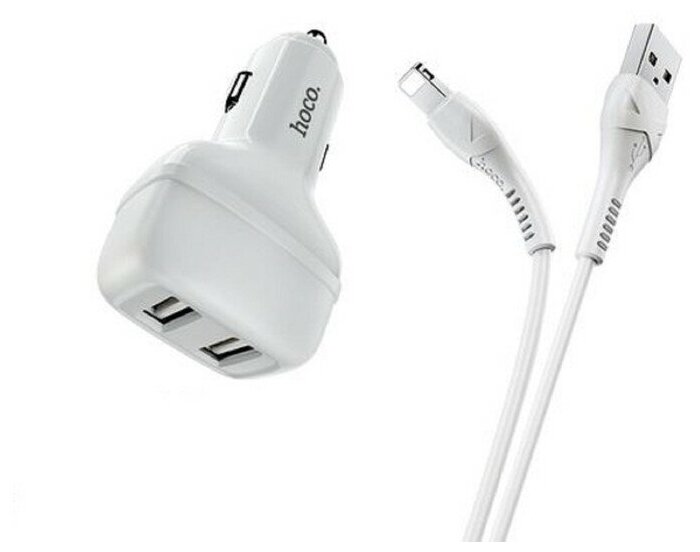 Car charger Hoco Z36, 2 USB - 2.4 A, Lightning cable 1 m, white