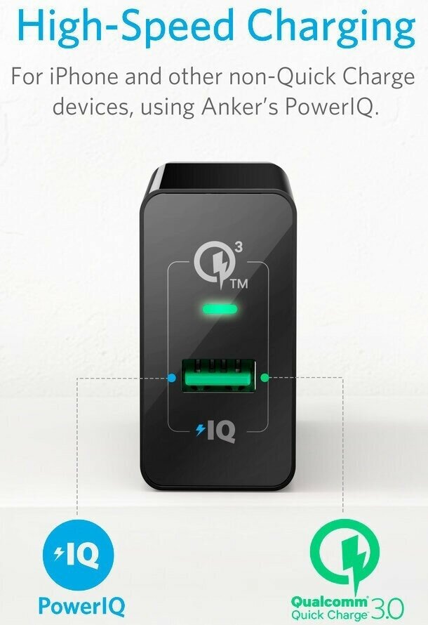 Cable connector: micro USB, number of connectors: 1, fast charging, fast charging standard: Qualcomm Quick Charge 2.0, Qualcomm Quick Charge 3.0, maximum output current: 3 A, cable included, features: fast charging