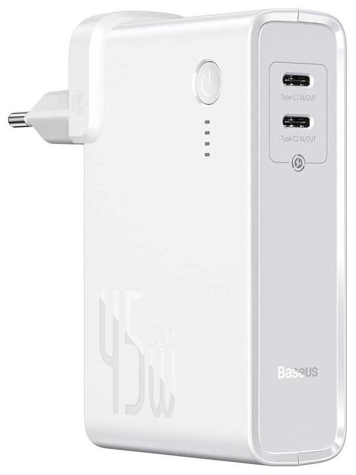 Baseus PD Fast AC Charger with External Battery 10000mAh Baseus Power Station 2 in 1 - White PPNLD-F02