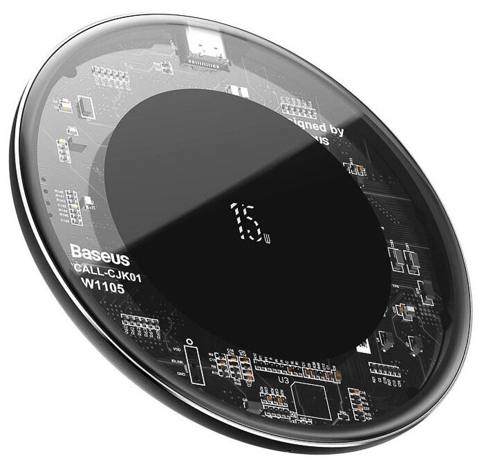 Wireless charger Baseus BS-WC-P10C Simple, 15W, aluminium, glass, with Type-C cable, transparent