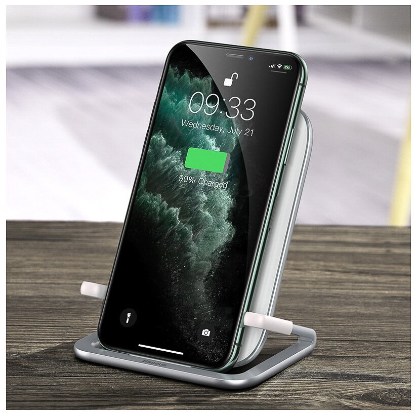 Wireless charger Baseus BS-W502 Rib, 15W, plastic, with Type-C cable, white