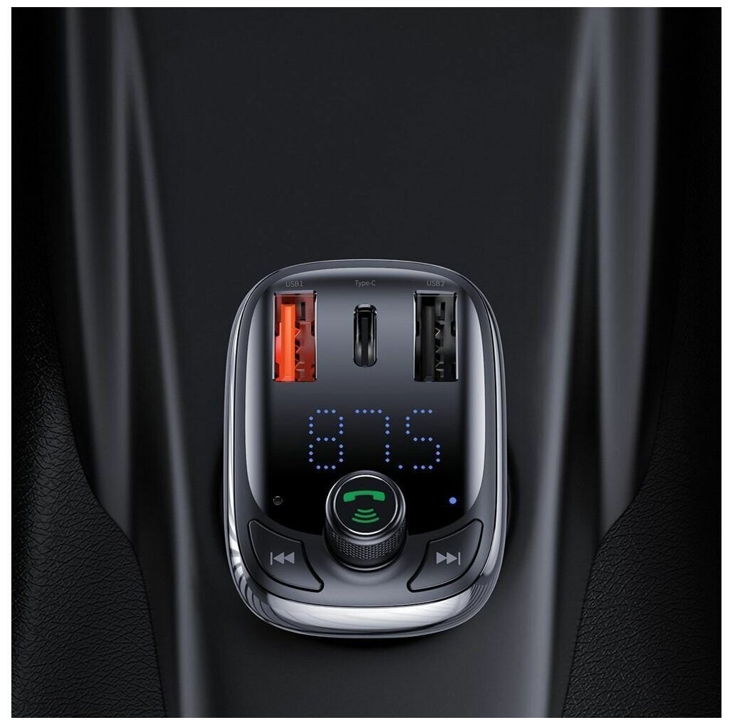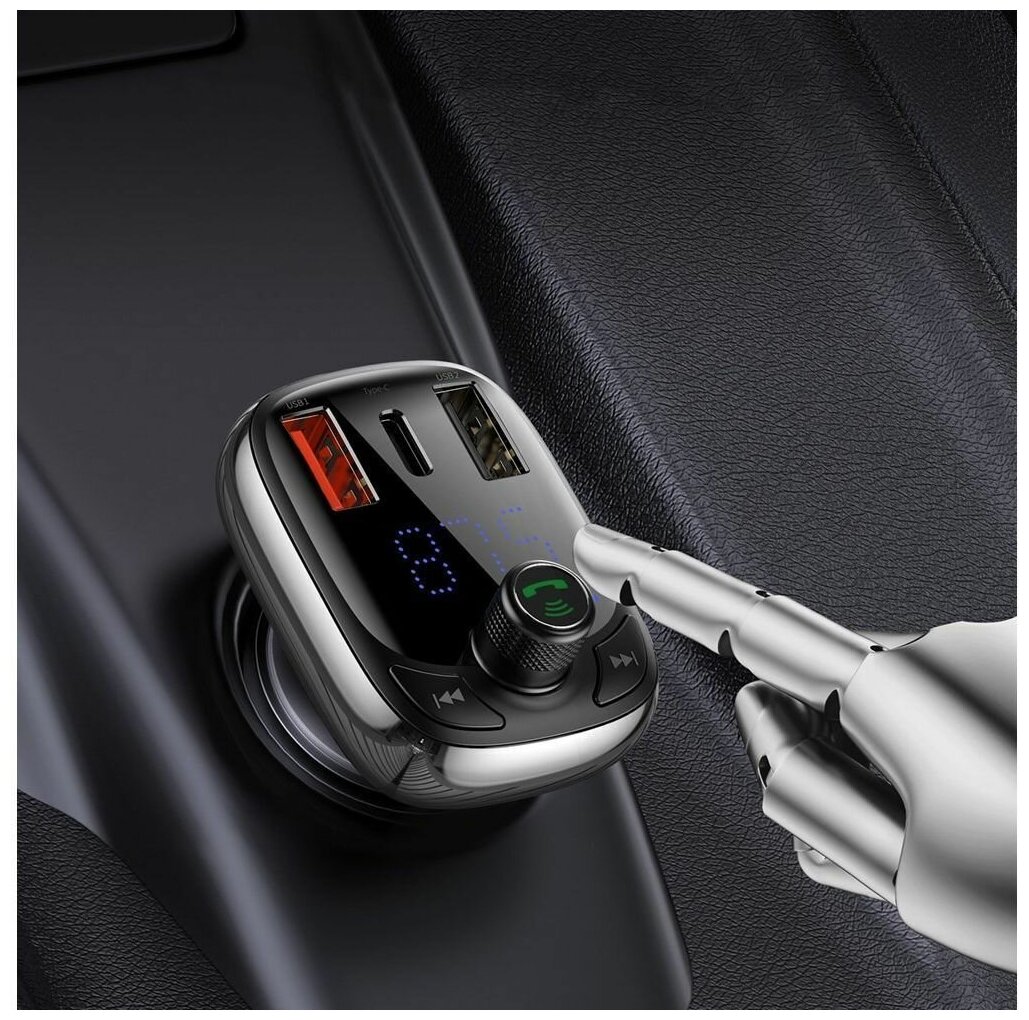 Car charger wireless BASEUS T typed S-13, 2*USB+USB-C + FM transmitter, black, display, TF CCTM-B01
