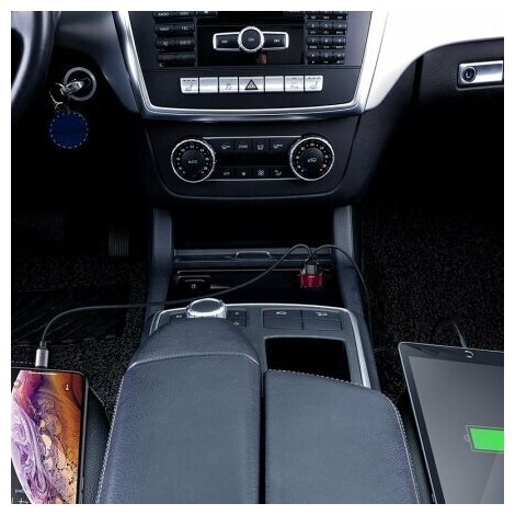 Car charger for phone in cigarette lighter BASEUS Magic C20C, 2*USB, 5A, 45W, red, display+fast charge