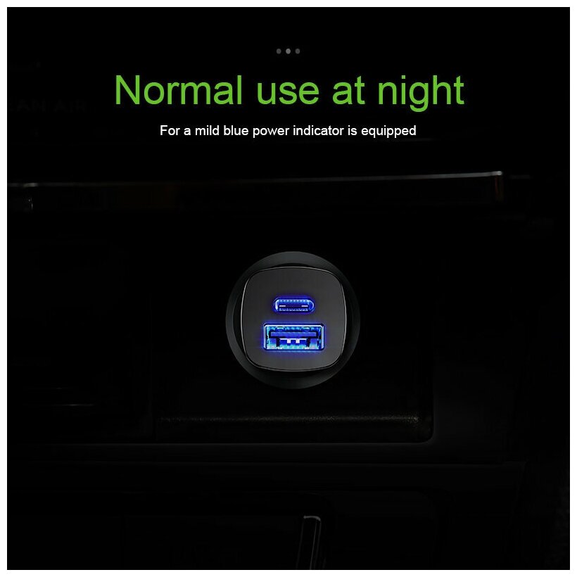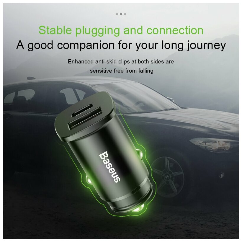 Car charger BASEUS Square metal, USB+USB-C, 5A, 30 W, black, fast charging