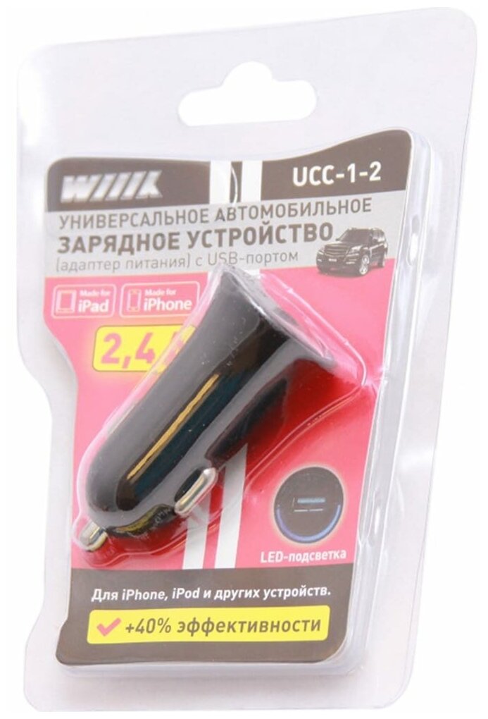 Wiiix Car Charger, USB Port, Black