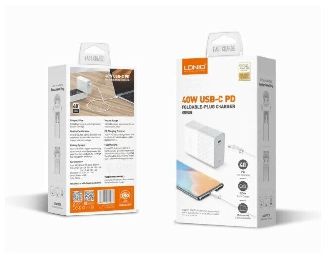 Cable connector: USB Type-A, USB Type-C, number of connectors: 1, fast charging, fast charging standard: Qualcomm Quick Charge 4.0, USB Power Delivery, maximum output current: 2 A, maximum output power: 40 W, cable in set, feature