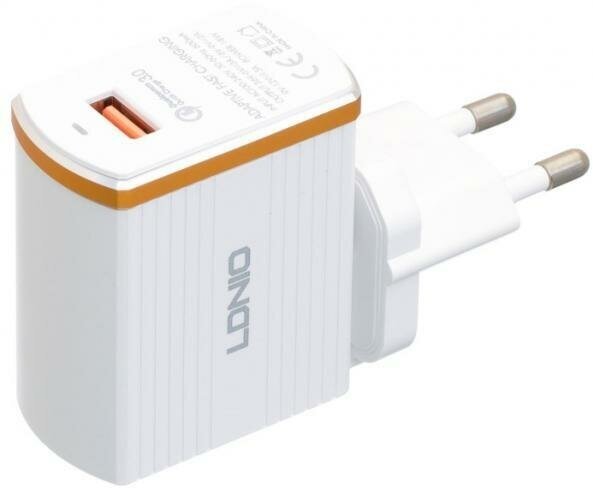 Network charger LDNIO A1302Q/ + Lightning cable/ QC 3.0/ 1 USB Auto-ID/ Output:5V_9V_12V, 18W/white/gold