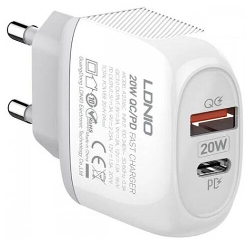Network charger LDNIO A2316C/ + Cable Micro/ PD + QC 3.0/ 2 USB Auto-ID/ Output: 5V_9V_12V, 20W/white