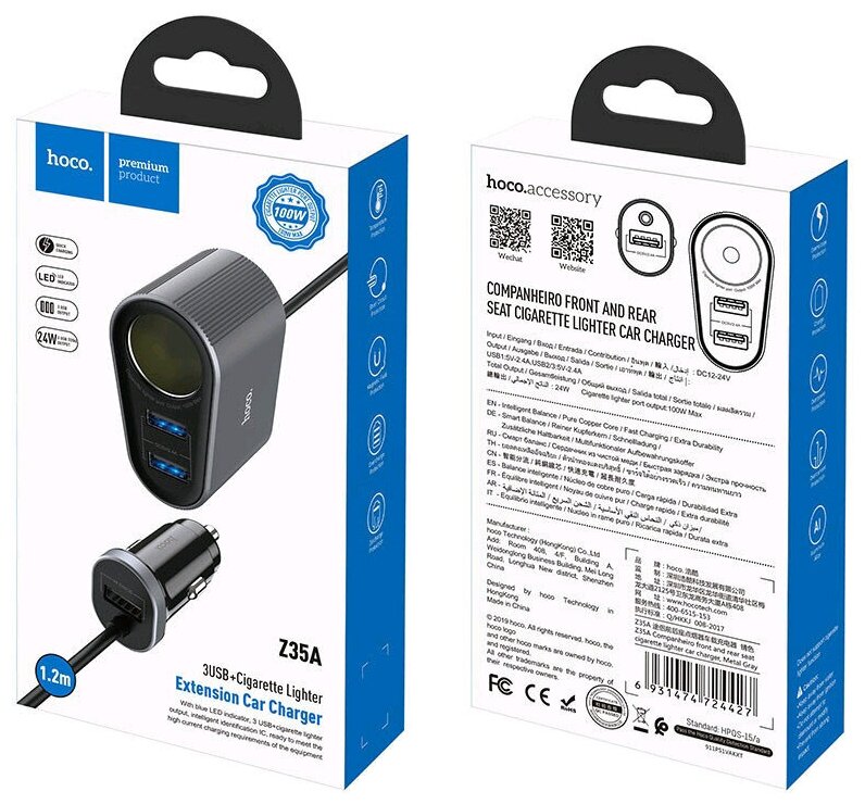 AZU adapter to 3 USB + cigarette lighter 3.1A Z35A HOCO dark gray