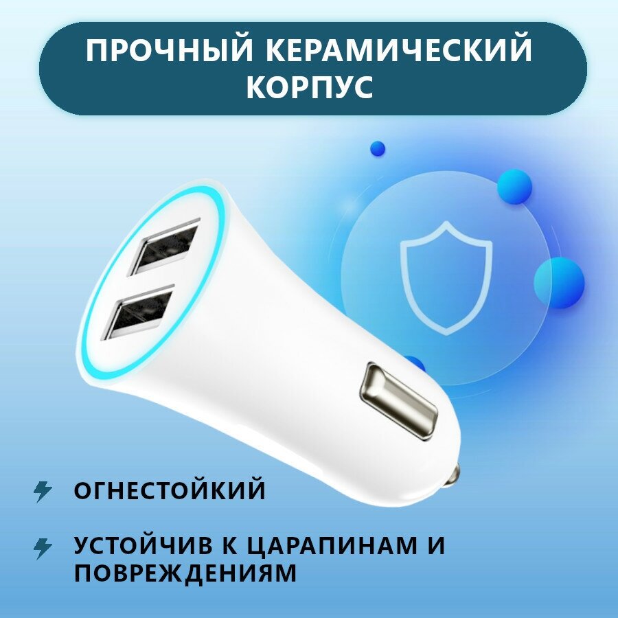 Car charger BYZ Y22, 2xUSB-A, 2.4A + cable BC-002 Lightning AM-8pin, white