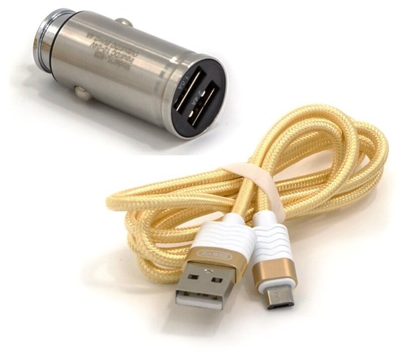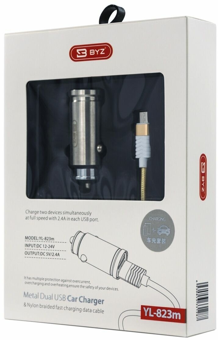 Car charger BYZ YL-823 2xUSB-A, 2.4A + cable BL-695 AM-microBM, silver