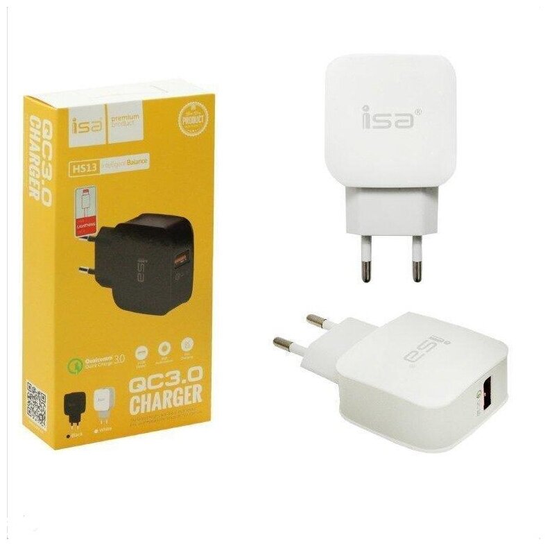 Wall charger fast 1 USB Quick Charge 3.0 ISA HS13 white
