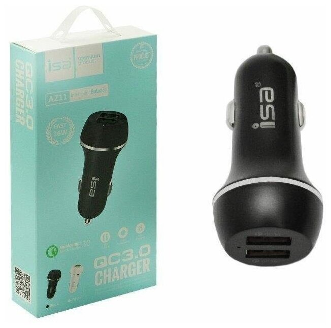 Car charger 2 USB, 2.4A, Quick Charge 3.0, ISA, AZ-11