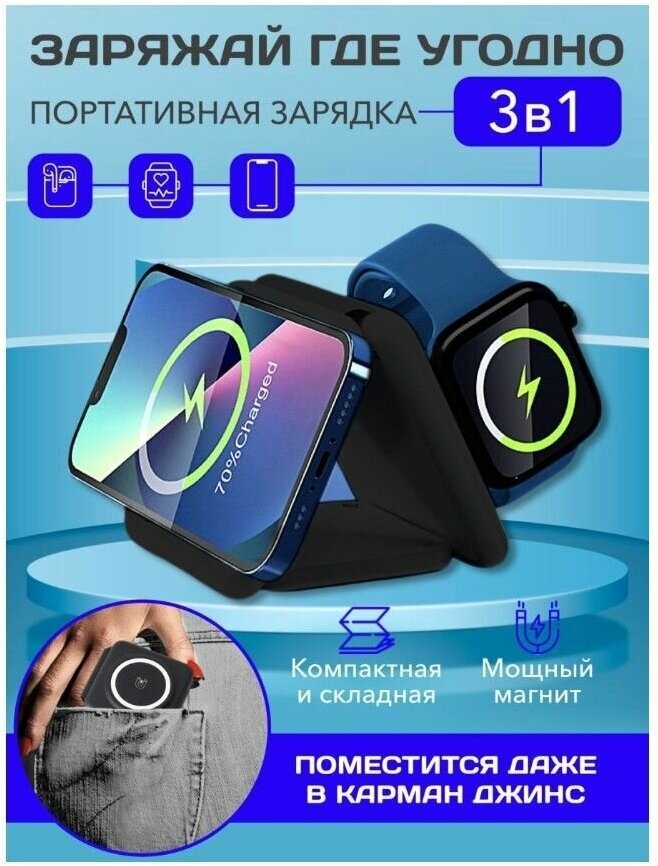 For 2 phones, zone for wireless headphones, zone for smart watches
