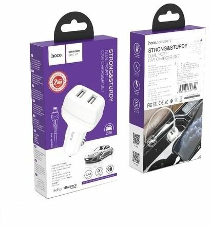 Car charger Hoco Z36, 2xUSB, 2.4 A, Lightning cable, 1 m, white