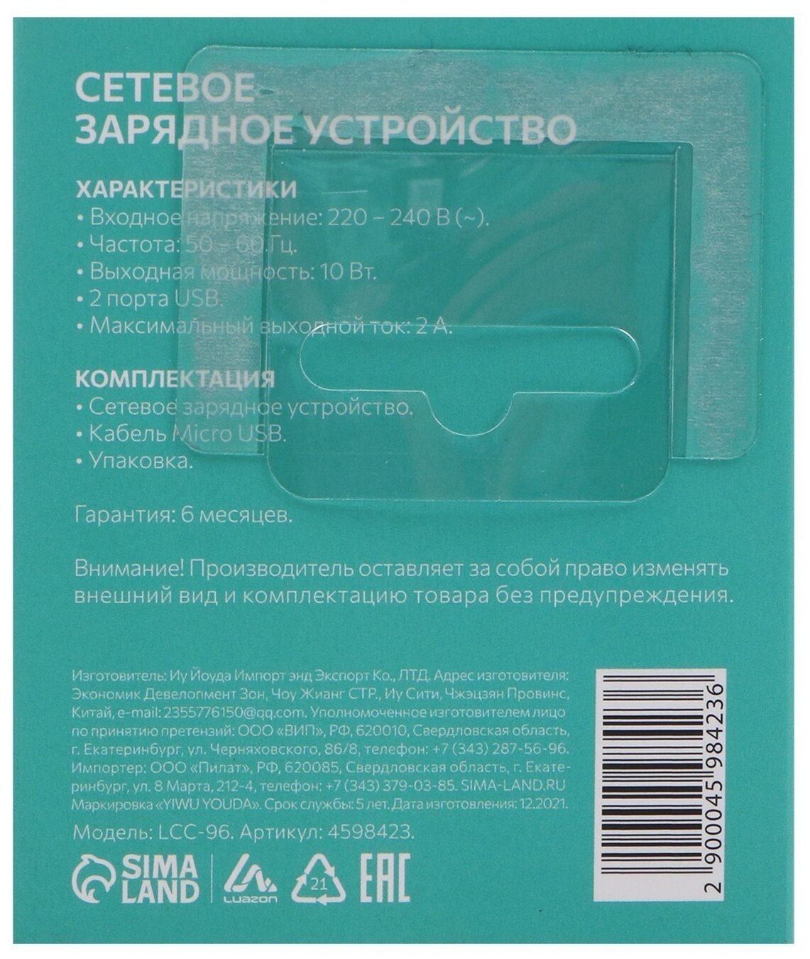 Cable connector: micro USB, number of connectors: 2, maximum output current: 2A, cable included, features: cable included