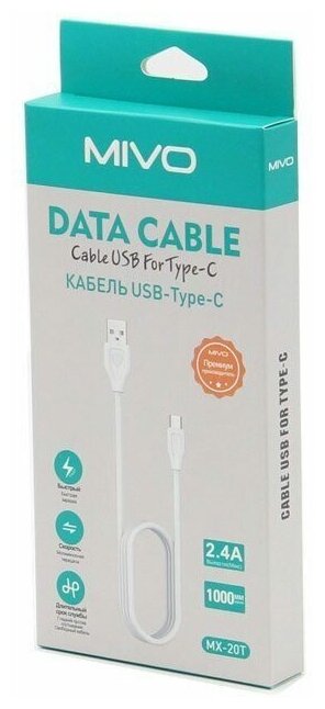 USB-Type-C charging cable Mivo MX-20T, 1m, 2.4A, phone charger