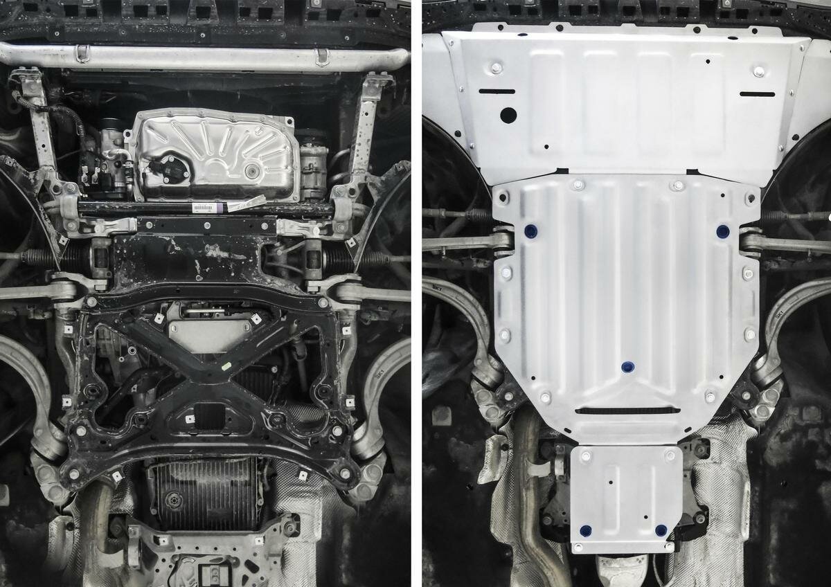 Protection kit, type of protection: engine crankcase, gearbox, transfer case, material: aluminum, stiffeners, powder enamel coating, thickness: 3 mm, length: 1100 mm, width: 750 mm, weight: 13 kg
