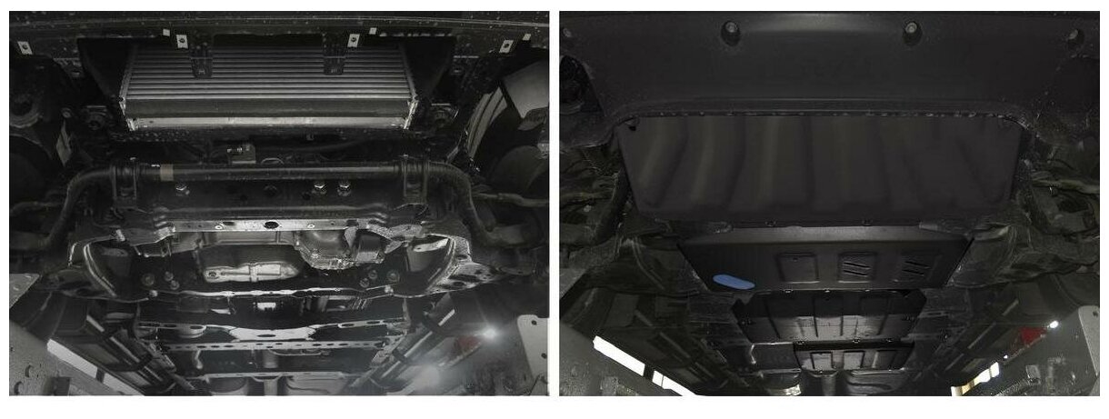 Protection kit, type of protection: engine crankcase, gearbox, radiator, transfer case, material: steel, stiffeners, oil drain hole, powder enamel coating, thickness: 3 mm, length: 850 mm, width: 7