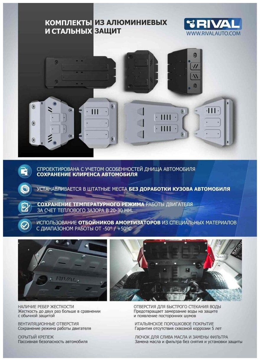 Gearbox Rival Ford Ranger III 2012-2015, steel 3 mm, with fasteners. 222.1843.1 - Rival art. 222.1843.1