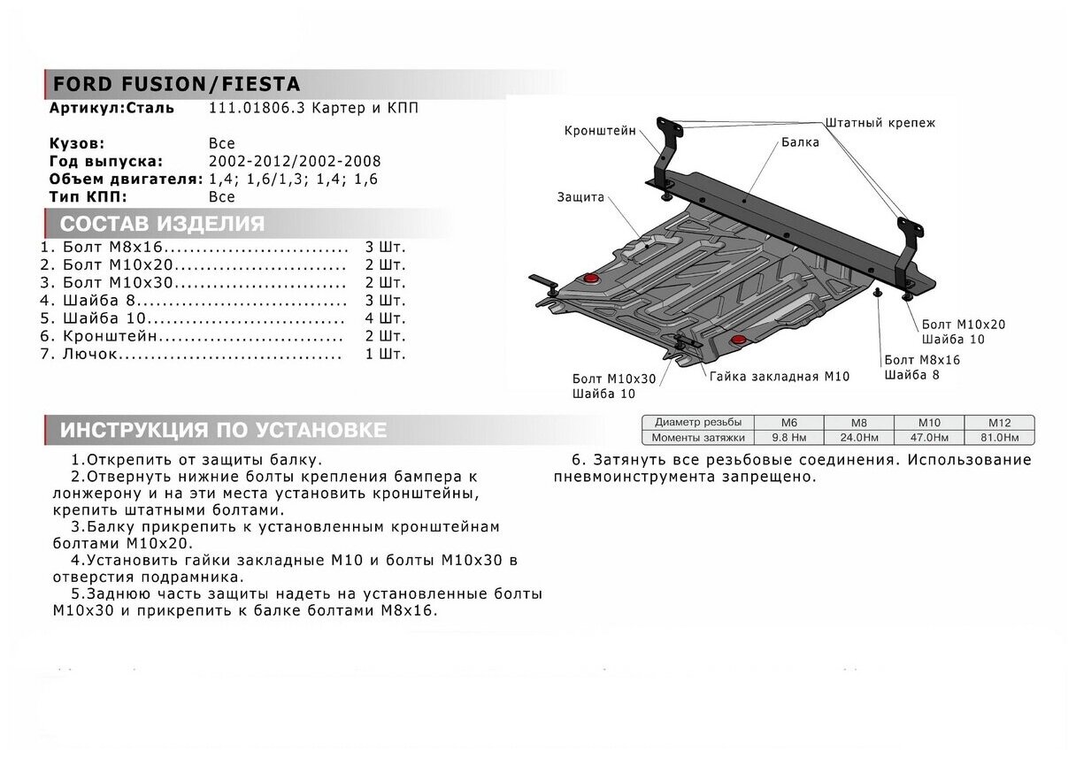 Ford Fiesta V 1.3; 1.4; 1.6 2002-2008 Ford Fusion I 1.4; 1.6 2002-2012