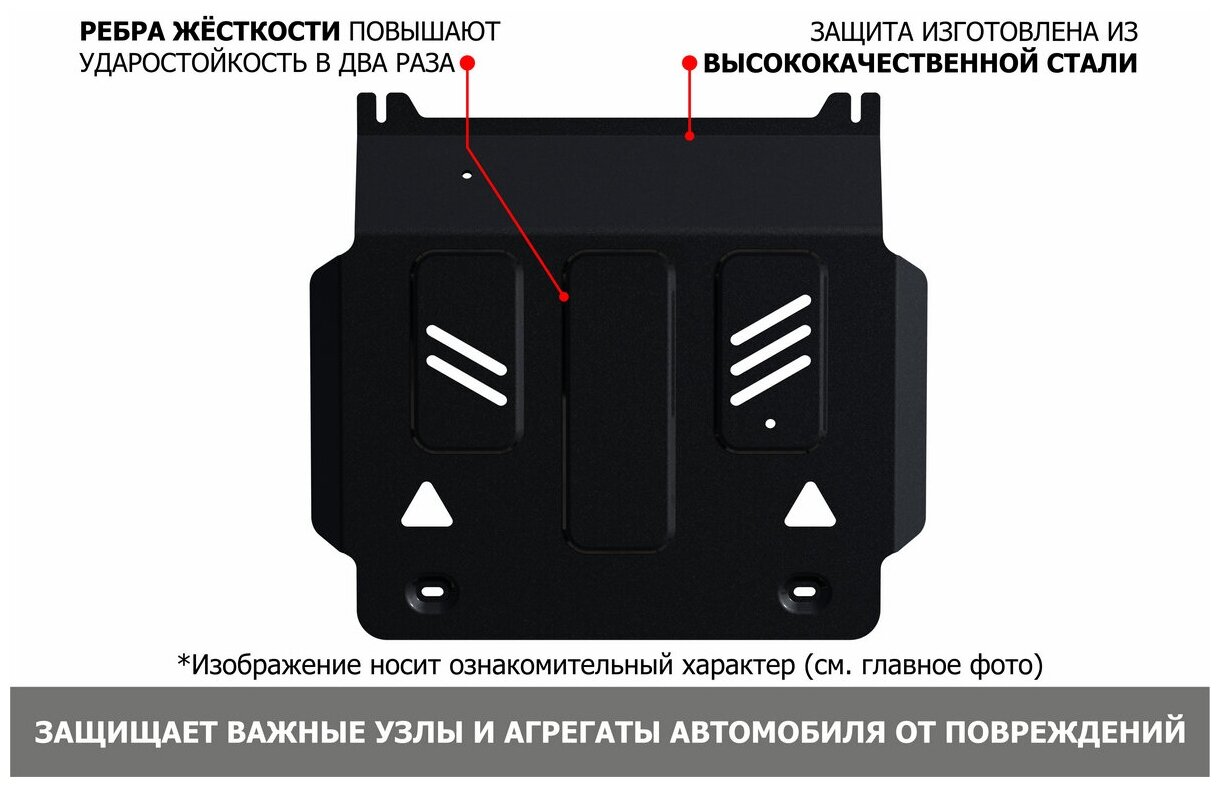 Type of protection: engine crankcase, material: steel, stiffeners, oil drain hole, powder enamel coating, thickness: 1.80 mm, length: 630 mm, width: 886 mm, weight: 10.35 kg