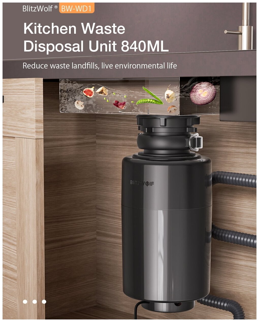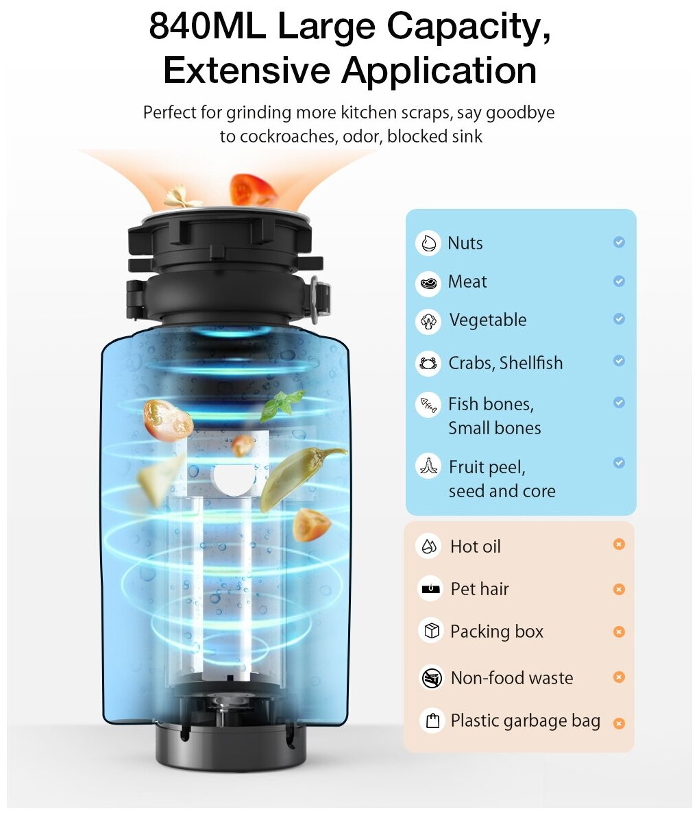 BlitzWolf BW-WD1 Kitchen Waste Disposal Unit 840ML with Two-level Grinding Black
