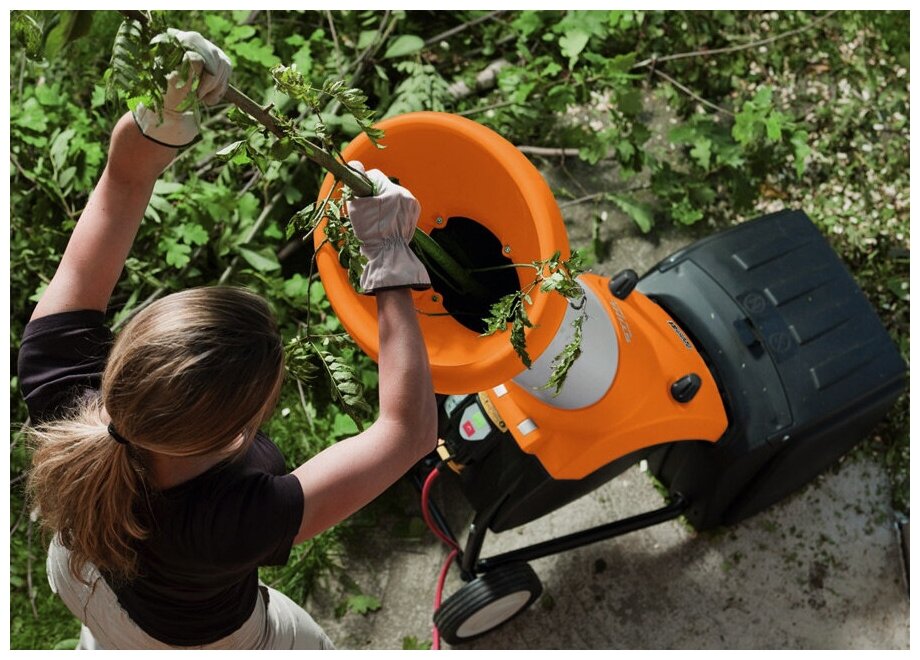 Engine type: electric, power: 2500 W, purpose: chopping branches and leaves, chopping system: cutting knives, branches diameter: up to 30 mm, design features: hopper, wheels, weight: 28 kg
