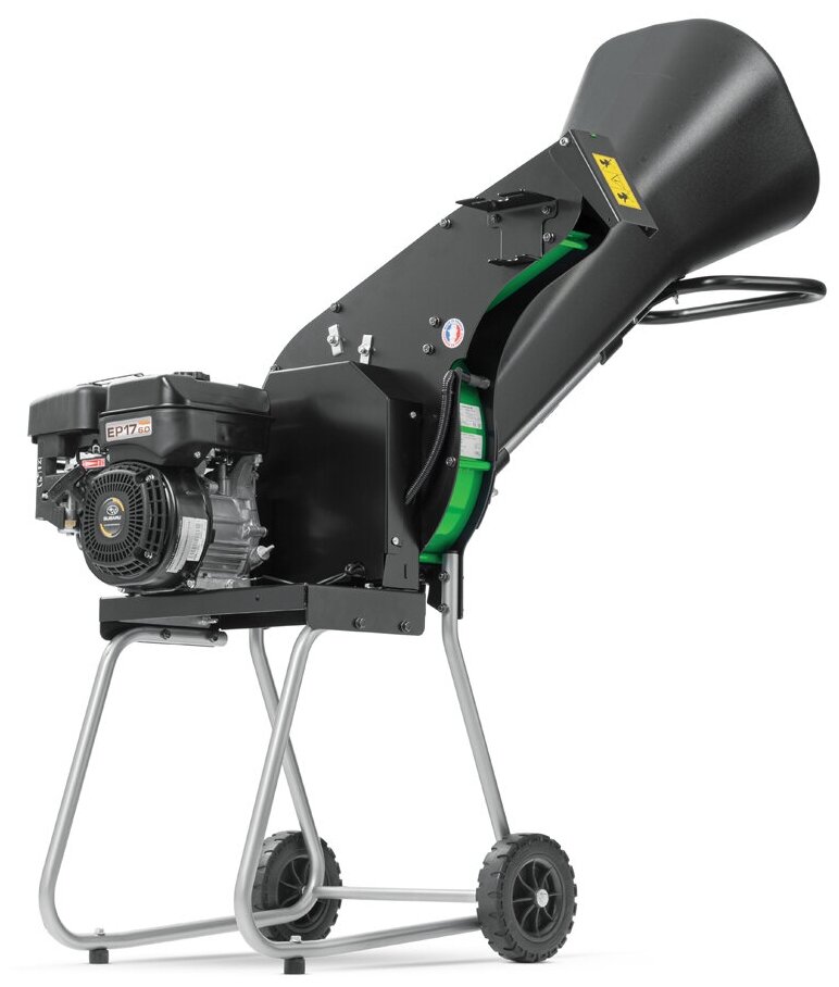 Engine type: gasoline, power: 6 hp, purpose: chopping branches and leaves, chopping system: cutting knives, branch diameter: 40–50 mm, design features: wheels, weight: 72 kg