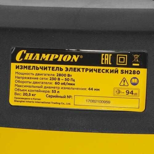 Motor type: electric, power: 2800 W, purpose: chopping branches, chopping system: cutter, branches diameter: 40–50 mm, additional functions: protection against accidental activation, reverse, design features