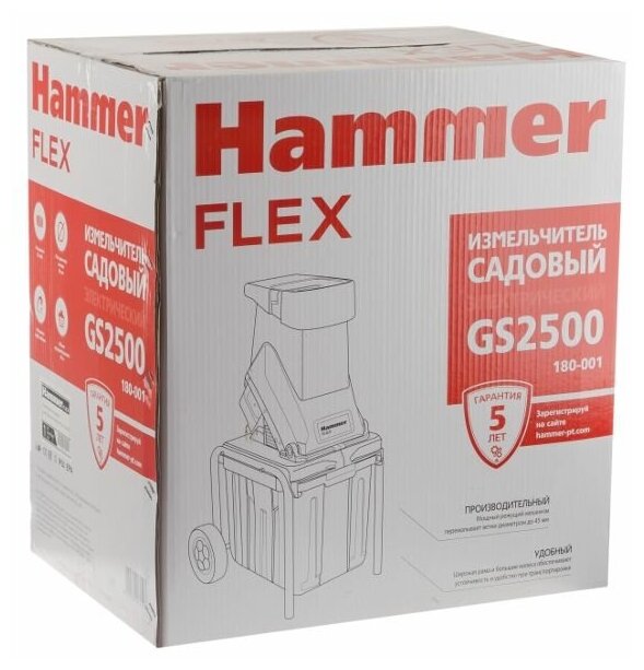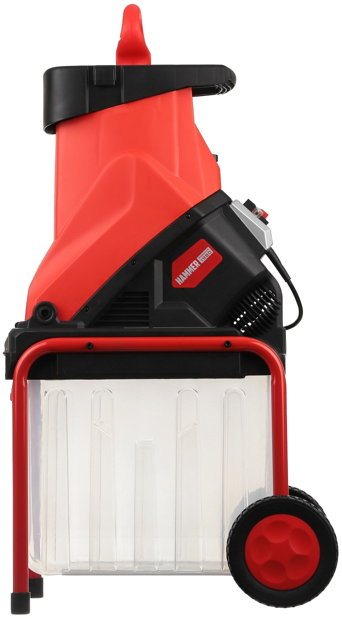 Motor type: electric, power: 2800 W, purpose: grass and leaves chopping, chopping system: milling cutter, branches diameter: 40–50 mm, design features: wheels, container, pusher, waste collector: container