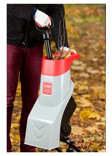 Motor type: electric, power: 2800 W, purpose: grass and leaves chopping, chopping system: milling cutter, branches diameter: 40–50 mm, design features: wheels, container, pusher, waste collector: container