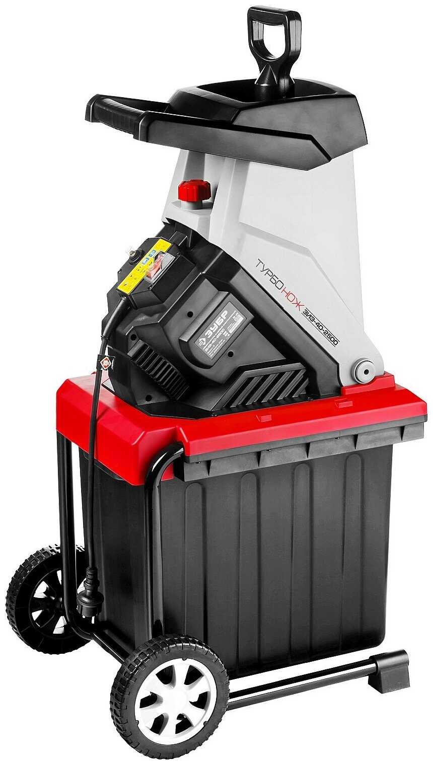 Motor type: electric, power: 2800 W, purpose: grass and leaves chopping, chopping system: milling cutter, branches diameter: 40–50 mm, design features: wheels, container, pusher, waste collector: container