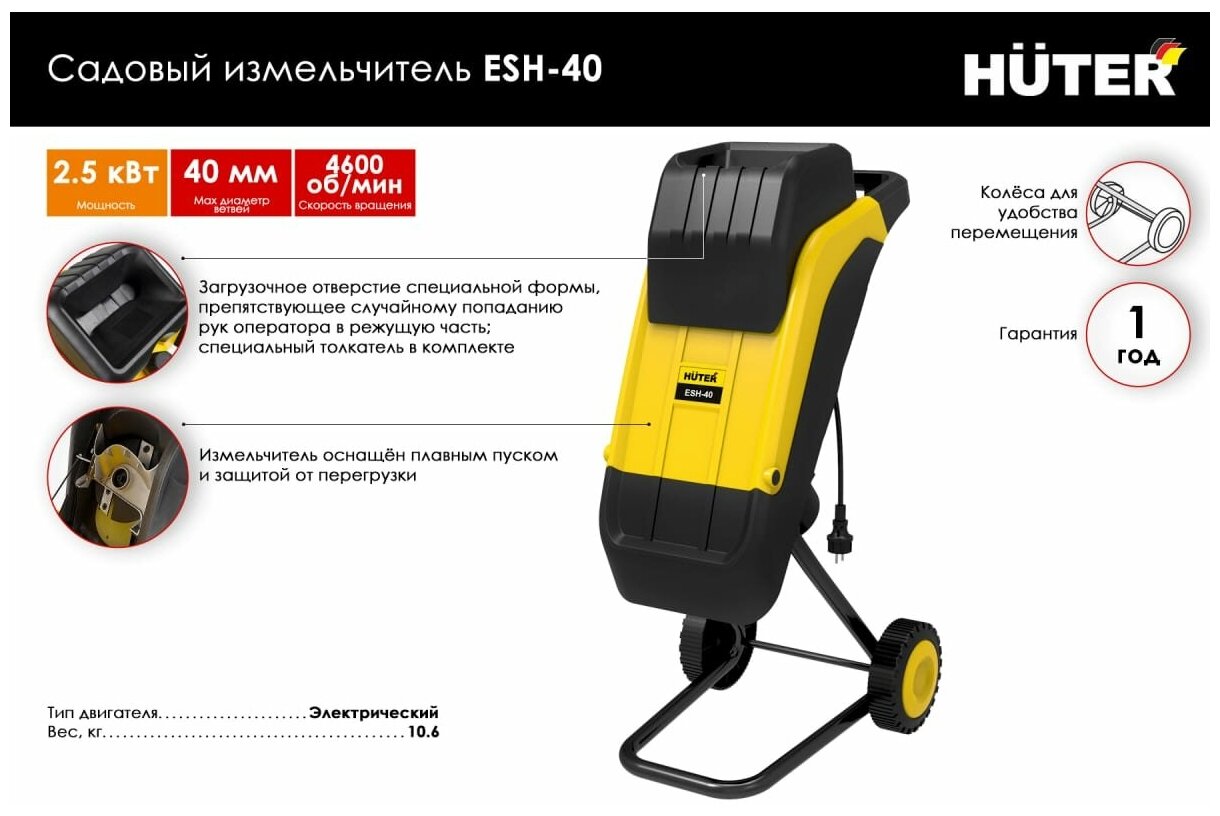 Engine power 2.5 kW No toxic emissions Wheels for easy movement Huter ESH-40 70/13/21 around the site