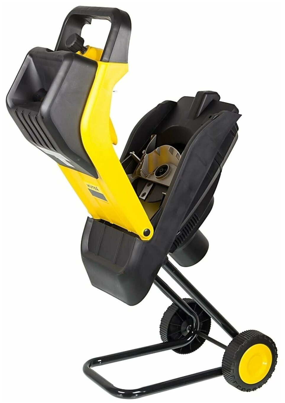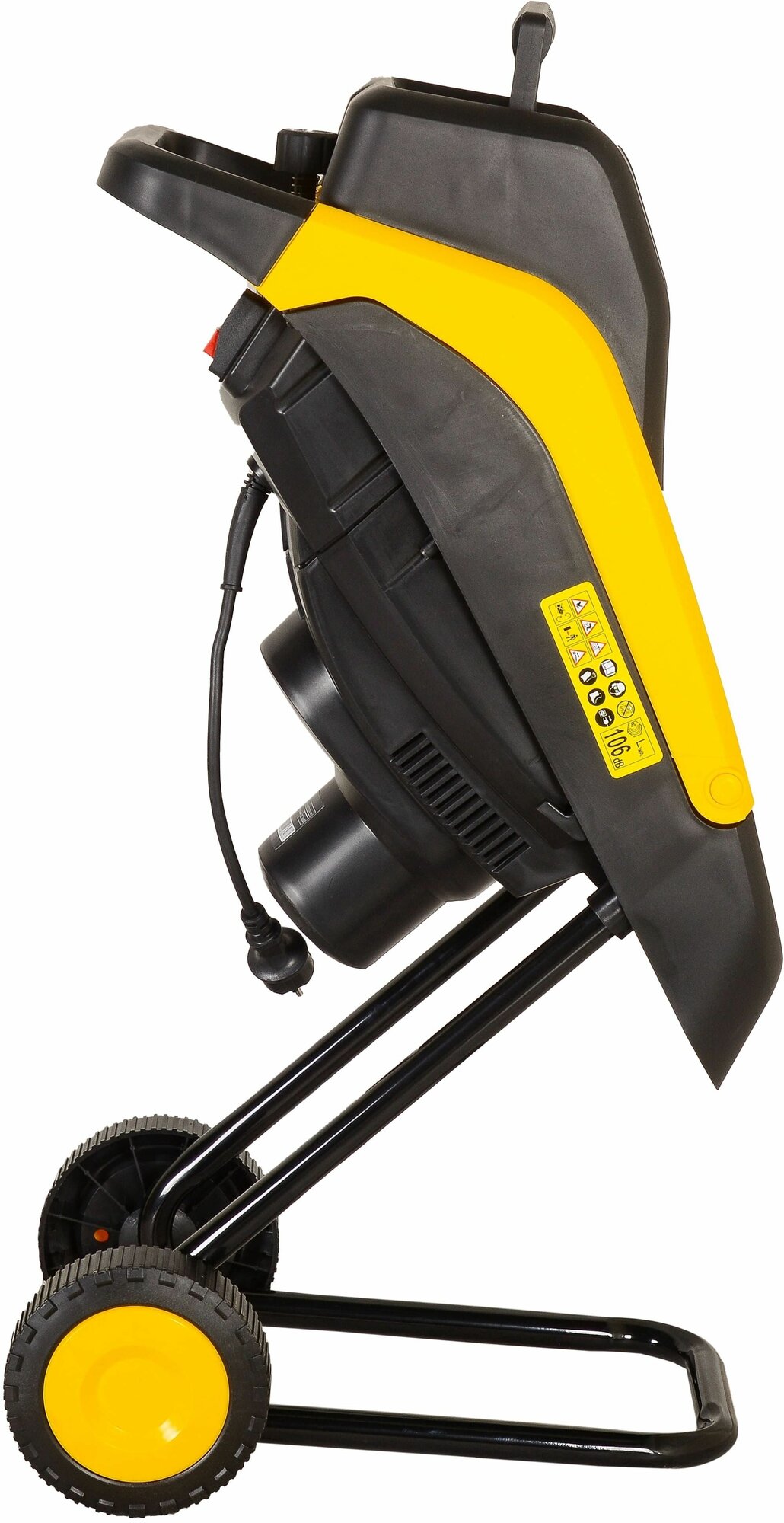 Motor type: electric, power: 2500 W, power: 3 hp, purpose: chopping branches, chopping system: cutting knives, branches diameter: 30–40 mm, additional functions: overload protection, soft start, design