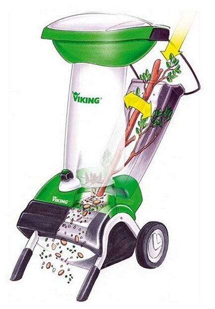 Motor type: electric, power: 2800 W, purpose: grass and leaves chopping, chopping system: milling cutter, branches diameter: 40–50 mm, design features: wheels, container, pusher, waste collector: container