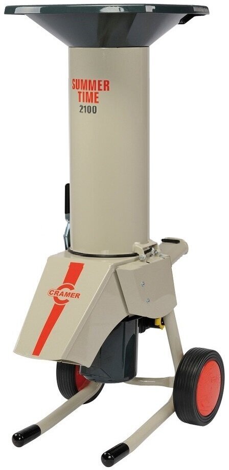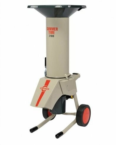 Motor type: electric, power: 2100 W, purpose: chopping of branches and leaves, chopping system: cutting knives, branches diameter: 30–40 mm, productivity: from 100 to 500 kg/h, design features: loading