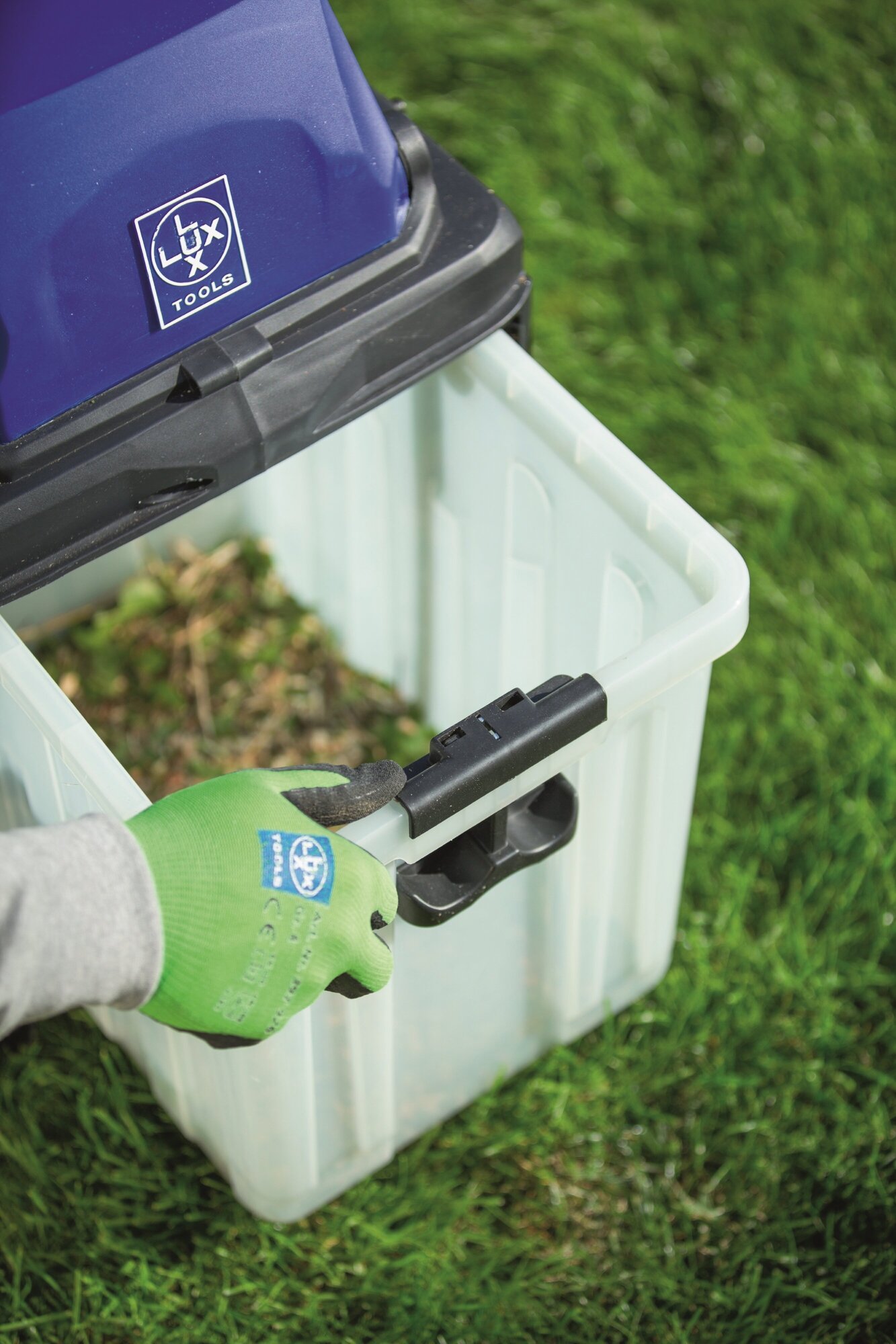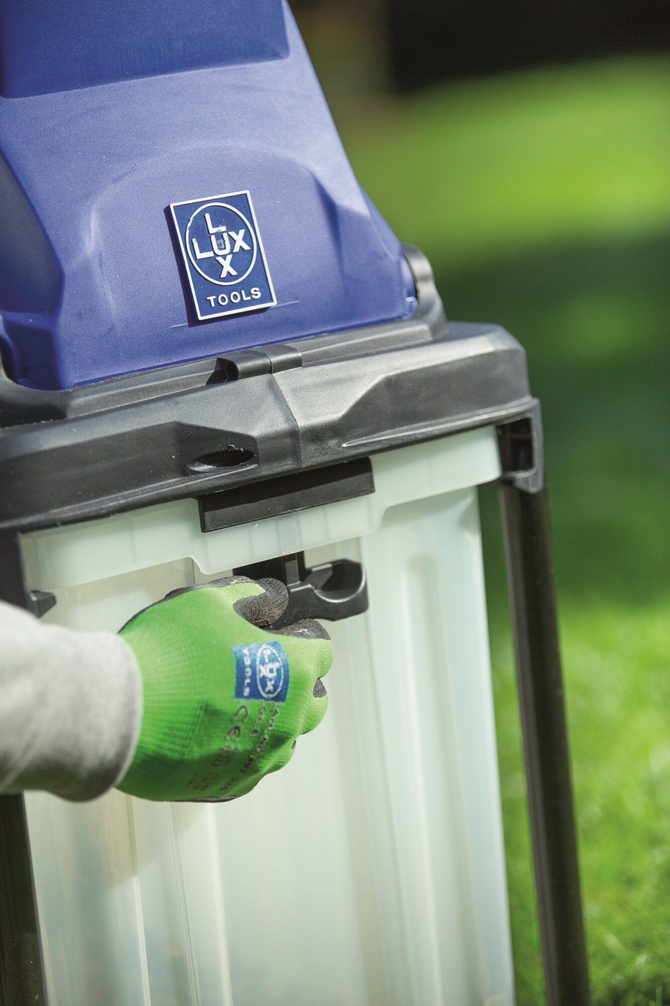 Engine type: electric, power: 2500 W, purpose: chopping branches, chopping system: cutting knives, branches diameter: 40–50 mm, design features: hopper, wheels, container, pusher, waste