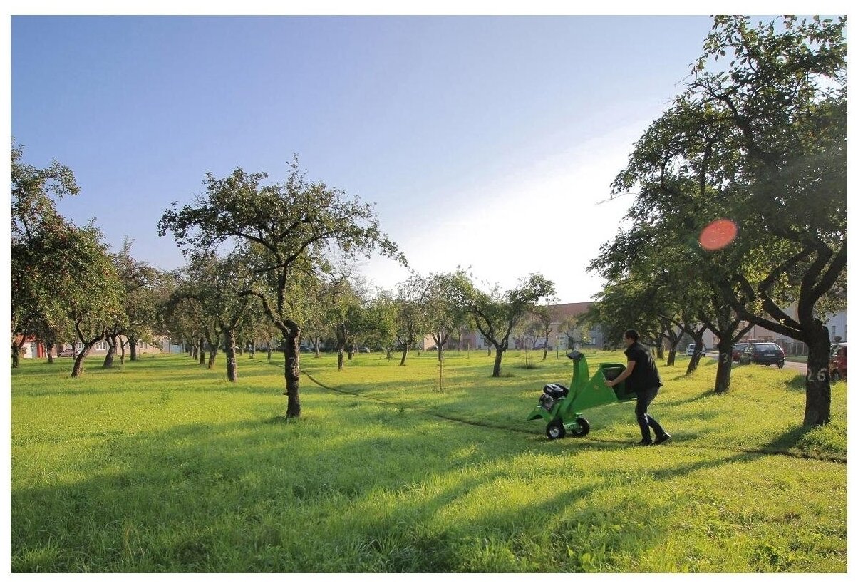Engine type: gasoline, power: 14 hp, purpose: chopping branches and leaves, chopping system: cutting knives, branches diameter: 65–100 mm, design features: hopper, wheels, weight: 130 kg